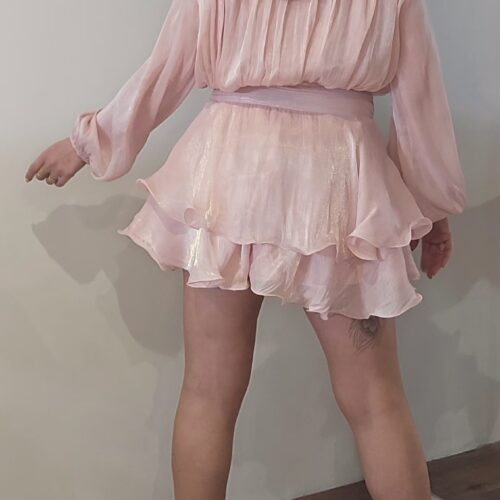 Volantée sur le bas elle sera légèrement courte, matière fluide et légère.